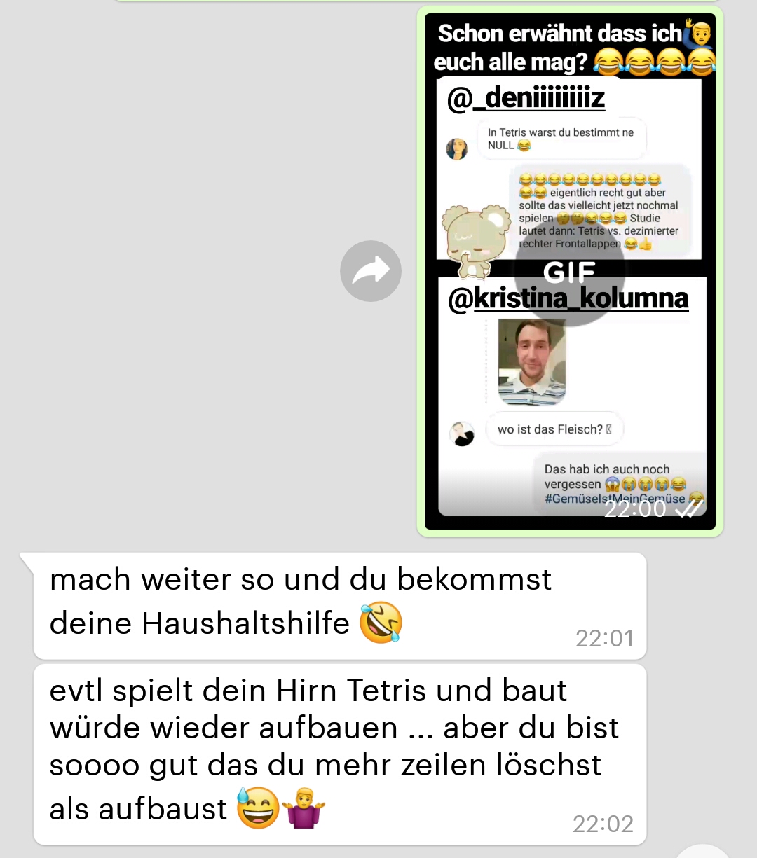 Folgende wissenschaftlich nicht ganz begründete Nachricht erreichte mich vor einiger Zeit, ploppte aber jetzt erst wieder vorm geistigen Auge hervor:
